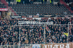 Für die ständig singende Südtribüne bräuchten wir etwas mehr Abwechslungen im Liedgut, vielleicht etwas, dass die momentane Lage widerspiegelt. Klassiker wie Wir sind die Fans von Sankt Pauli, wir sind immer traurig, denn wir gewinnen nie. Zum Beispiel. Oder ein paar neue Schüttelreime ausprobieren. Schon wieder kein Tor, schon wieder kein Tor, wenn wir singen ist das nur noch Galgenhumor. Obwohl, eins haben wir ja geschossen, einen Elfmeter. Davon hätten wir noch einen oder zwei nötig gehabt um das Spiel zu gewinnen und einer wäre sogar berechtigt gewesen, aber wie ich meinem Nachbarn schon sagte, wenn das ganze Stadion wieder einmal HAND oder ELFER gebrüllt hat, einen zweiten kriegen wir heute nicht.